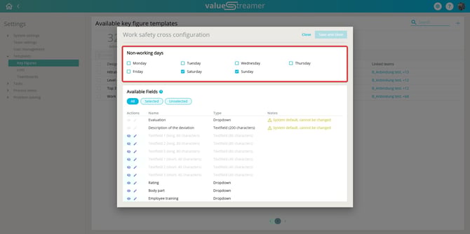 In the admin area, non-working days (e.g., weekends, public holidays) can be defined. These will appear as ⬜ grey in the safety cross.