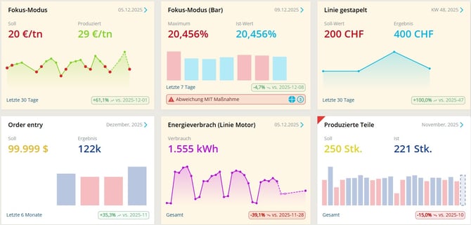 ✨ Tipp: Ideal für KPIs mit hohem Management-Fokus oder für Daily Shopfloor Meetings. In der Detailansicht bleibt die gewohnte Darstellung erhalten.