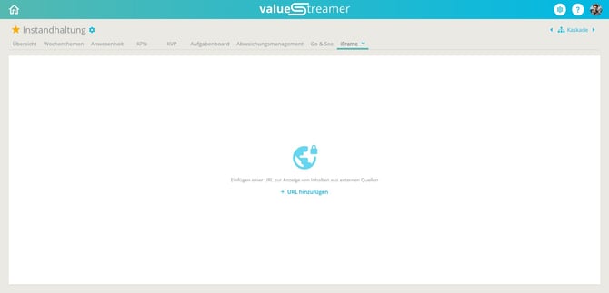 Mit dem neuen LayoutâTyp âiFrameâ können Inhalte aus externen Systemen (z.âŻB. ERP, MES, BIâTools wie Power BI) direkt in ValueStreamer eingebettet werden. So bleiben Teams im MeetingâKontext und können bei Bedarf direkt in Detailanalysen wechseln, ohne zwischen Anwendungen zu wechseln.