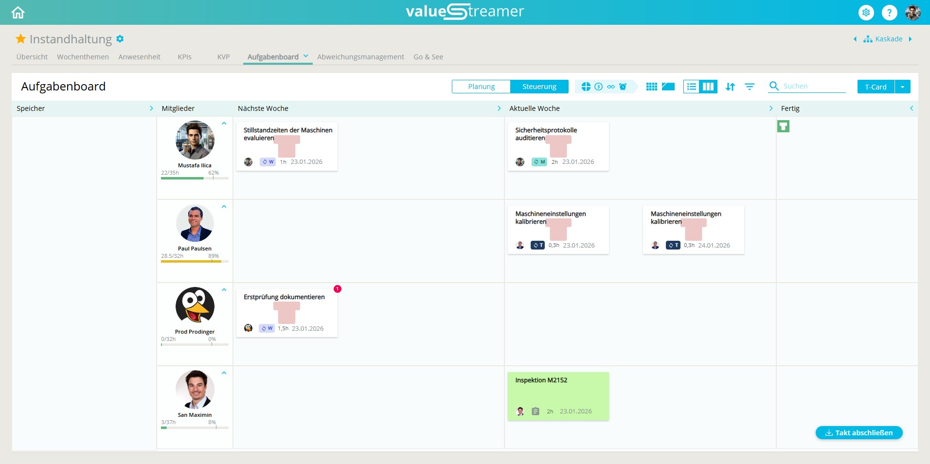 In diesem Artikel erfahren Sie, wie Sie TâCardâAufgaben in der Planungsansicht erstellen, einplanen und bestätigen. TâCards eignen sich besonders fĂźr wiederkehrende Prozesskontrollen wie Rundgänge, Audits oder StandardprĂźfungen.