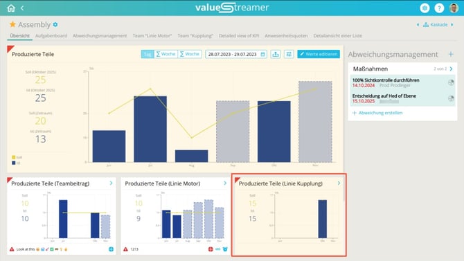 Mit der Funktion zur Visualisierung veralteter Werte auf KPI-Kacheln erkennen Shopfloor-Nutzer sofort, ob aktuelle und vollständige Daten für die angezeigte Kennzahl vorliegen. Diese Funktion ist zentral für faktenbasierte Entscheidungen.